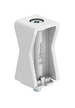 Reihenschelle mit Schlitzschraube, geeignet für Schiene mit Schlitzweite von 11 ÷ 12 . Schellenkörper bestehend aus schlagfestem Polystyrol in lichtgrau RAL 7035. Mit einer Schraube aus galvanisch verzinktem Stahl.