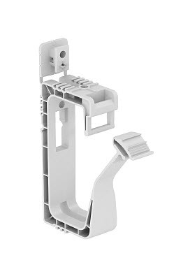 Sammelhalterung für die allgemeine Anwendung mit Befestigungslöchern 6 mm Ø, geeignet für Wand- und Deckenmontage. Das angespritzte Befestigungselement kann mit Schlagdübel oder Gasdrucknagelgerät befestigt werden. Der empfohlene Befestigungsabstand bei voller Belegung beträgt 50-60 cm.