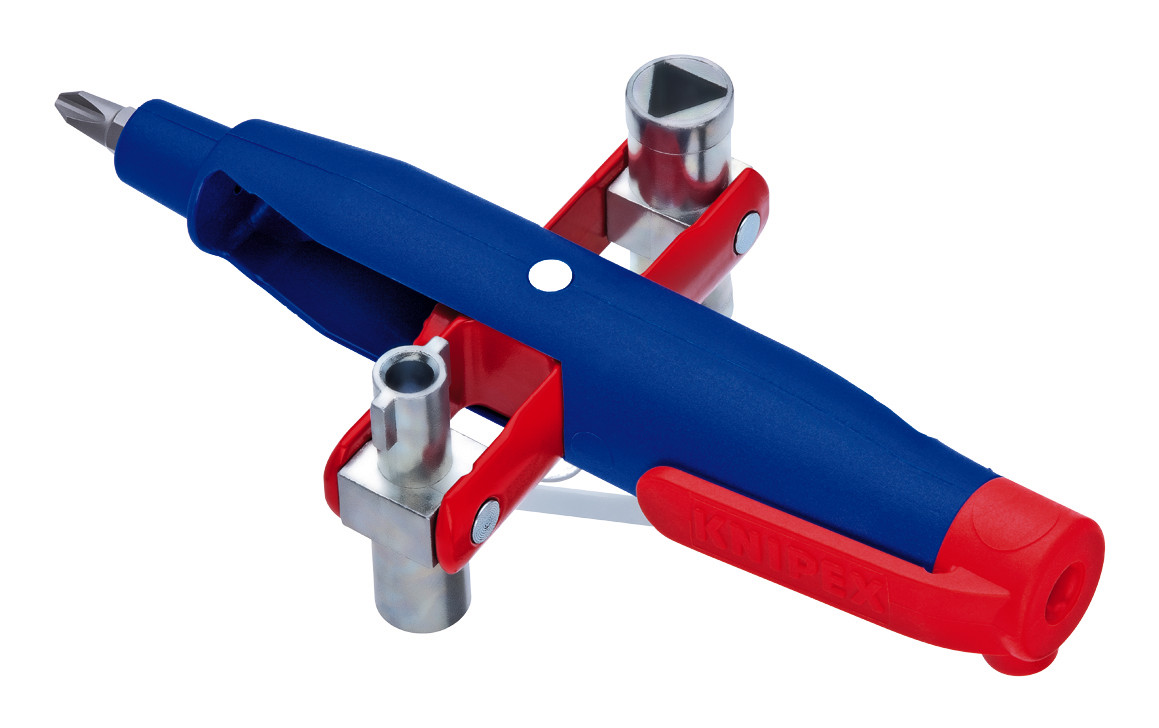 Werkzeugkörper: Kunststoff, glasfaserverstärkt. Schlüsselprofile: Zink-Druckguss. Transportfreundlicher Schaltschrank-Schlüssel in Kugelschreiberform mit Befestigungsclip zur sicheren Aufbewahrung. Durch Ausschwenken des Schlüsselträgers können vier verschiedene Schlüsselprofile nutzbar gemacht werden. Für Schaltschränke, Absperrsysteme der Gas-, Wasser- und Elektrizitätsversorgung. Für technische Anlagen in Gebäuden wie Klima- und Belüftungsanlagen, Absperrventile, Netzschalttafeln usw.. Universelle 1/4"-Bitaufnahme für handelsübliche Bits (Dauermagnet zur Fixierung). Zusätzliche Bitaufnahme für 1/4"-Bits in einem Schlüsselprofil. Mit Bit: Kreuzschlitz PH2 und Aufbewahrungsmöglichkeit für einen zweiten Bit. Befestigungsclip zur sicheren Aufbewahrung. Corpus und Clip aus Kunststoff. Schlüsselträger und Schlüsselprofile aus Zink-Druckguss.| Hersteller / Marke | KNIPEX |