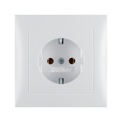 Steckdose SCHUKO mit Abdeckplatte S.1 polarweiß, matt. Steckdose SCHUKO® mit Abdeckplatte, mit Steckklemmen nach VDE 0620 als Verbindungsklemmen ausgeführt und genehmigt, mit einteiligem Erdungsbügel. Unterputz-Installation, Standardprogramm. Material: Kunststoff, Thermoplast, bruchsicher, halogenfrei. Steckdose SCHUKO mit Abdeckplatte S.1 polarweiß, matt. Steckdose SCHUKO® mit Abdeckplatte, mit Steckklemmen nach VDE 0620 als Verbindungsklemmen ausgeführt und genehmigt, mit einteiligem Erdungsbügel. Unterputz-Installation, Standardprogramm. Material: Kunststoff, Thermoplast, bruchsicher, halogenfrei.| Hersteller / Marke | BERKER |