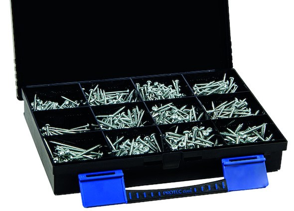 Informationen zum Koffer: Werkstoff: ABS, hohe Schlagzähigkeit, extrem stabil und schlagfest, beständig gegen gängige Fette, Öle und Benzin, temperaturbeständig: von -25°C bis +90°C, geringes Eigengewicht, Zweikomponentengriff mit Soft-Touch Effekt, sicher stapelbar durch Stapelnoppen, Maße (HxBxT): 55x336x245 mm Inhalt: Panheadschraube (siehe Infobox)970-teiliges Panheadschrauben Innenvielzahn (TX) - Sortiment:100 x 05103349 PTPHS 4,0 x 30100 x 05103337 PTPHS 4,0 x 40100 x 05103338 PTPHS 4,0 x 4580 x 05103350 PTPHS 4,0 x 5050 x 05103339 PTPHS 4,0 x 60100 x 05103340 PTPHS 4,5 x 35100 x 05103341 PTPHS 4,5 x 4080 x 05103342 PTPHS 4,5 x 5050 x 05103343 PTPHS 4,5 x 6080 x 05103344 PTPHS 5,0 x 3080 x 05103346 PTPHS 5,0 x 4050 x 05103347 PTPHS 5,0 x 50| Hersteller / Marke | PROTEC.CLASS |