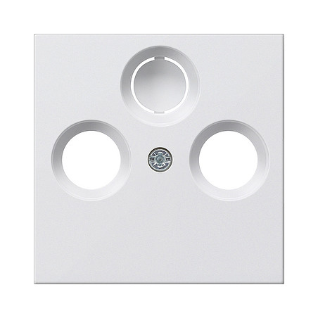 Abdeckung für Koaxial-Antennensteckdose Reinweiß seidenmatt Merkmale: - Drittes Loch ausbrechbar. Hinweise : - Nur für Schraubbefestigung.