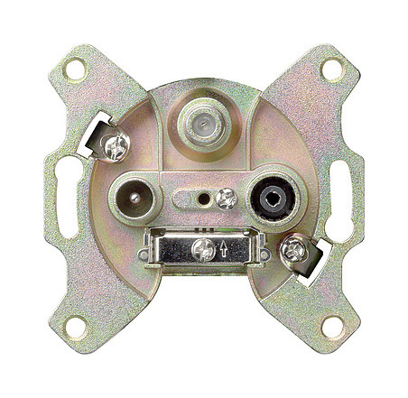 Einsatz Antennensteckdose (FS 302 F) Merkmale: - Mit drei Anschlüssen als Enddose verwendbar. - Einsatz in Einzelantennenanlagen, hinter einem Multischalter oder an einer entkoppelten Stichleitung. - Der Anschluss für den Satelliten-Receiver ist als F-Buchse ausgeführt. Über diesen ist auch die Gleichspannungsübertragung (max. DC 24 V 500 mA) zu einer Satellitenantenne möglich. Hinweise : - Nur für Schraubbefestigung. - Achtung! Bauraum für Stecker und Biegeradien beachten. - Bei Einsätzen mit Kupplungen beachten: Nicht für Kanalinstallation und Standard-Gerätedose geeignet. Anschluss mit Winkelsteckern empfohlen. - Installationsempfehlung: Kaiser Elektronic-Dosen Unterputz-Montage: Kaiser Best.-Nr.: 1068-02 Hohlwandmontage: Kaiser Best.-Nr.: 9062-94 Betoninstallation: Kaiser Best.-Nr.: 1268-40| Manufacturer / Brand | GIRA |