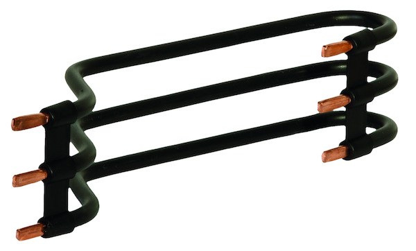 Konfektionierte und gebogene Verdrahtungsbrücken zur vertikalen Verdrahtung von LS-, FI-, und ähnlichen Schaltgeräten zur Installationstechnik, z. B. für Installations-Kleinverteiler und Zählerplätze gem. VDE 0603StiftsanschlussNennstrom 63 ANennspannung: 450 VLeitungsspetzifikation: H07V-UKupferquerschnitt: 10 mm²Normen / Vorschriften: EN 61439-1 / VDE 0660 DE 0609, Teil 600 September 2012 Niederspannungs-SchaltgerätekombinationenAusführung: dreipolig vormoniert, schwarz,125 mm TragschienenabstandIsolierwerkstoff: PVC| Manufacturer / Brand | PROTEC.CLASS |
