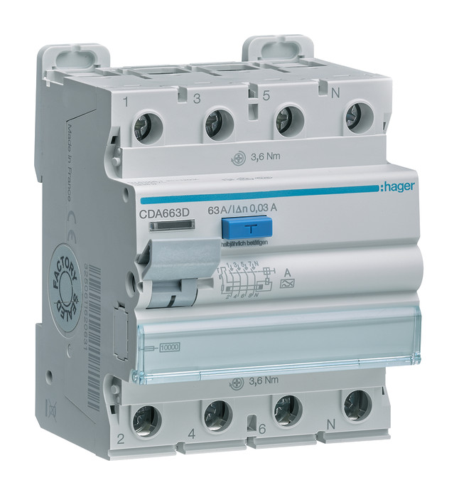 HAGER CDA663D FI-Schutzschalter 4P 63A 30mA