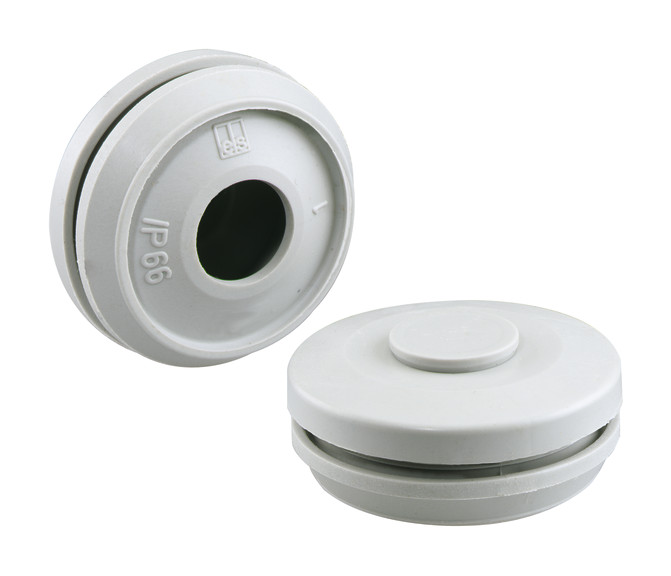 Doppelmembranstutzen, IP66, mit zwei Dichtungsmembranen, geschlossen, thermoplastisches Elastomer (TPE), grau, für Wandstärken 1,5-4,5mm Doppelmembranstutzen aus elastischem Kunststoff mit zwei Dichtungsmembranen, geschlossen, Schutzart IP