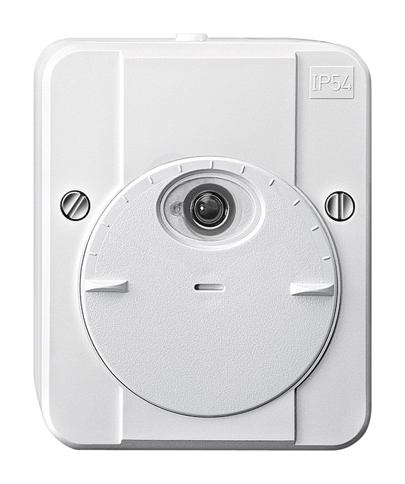 Wassergeschütztes Aufputz-Gerät mit schlagfestem Gehäuse. Verstärktes Relais. Hohe Lichtempfindlichkeit. Großer Anschlussraum. Anschlussleistung: bis 2300 VA. Max. Schaltstrom: AC 230 V, 10 A, cos Phi 0,6. Halogenlampen: AC 230 V, bis 2000 W. Glühlampen: AC 230 V, bis 2300 W. Kapazitive Last: max. 140 uF. Anschlussklemmen: für 2,5 mm² starre Leiter. Einstellbereich/Schaltschwelle: 3 bis 2000 Lux, einstellbar. Schaltverzögerung. beim Einschalten: ca. 40 s. beim Ausschalten: ca. 100 s. Schutzart: IP 54. Abmessungen: ca. 97x80x47 mm. Zubehör: Kondensator 542895. Ausführung: mit Schaltverzögerung, polarweiß.| Hersteller / Marke | MERTEN |