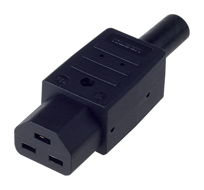 Kaltgerätedose 16 A, 250 V, 70°C schwarz, Thermoplast, C19, mit Knickschutztülle zur Leitungsmontage| Hersteller / Marke | BACHMANN |