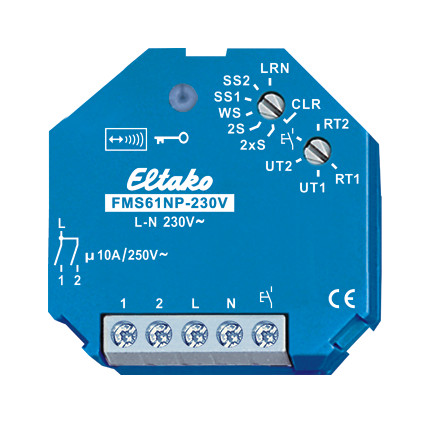Funkaktor Multifunktions-Stromstoßschalter 230V. 1+1 Schließer nicht potenzialfrei 10A/250V AC, Glühlampen 2000 Watt. Verschlüsselter Funk, bidirektionaler Funk und Repeater-Funktion zuschaltbar. Stand-by-Verlust nur 0,8 Watt. Für Einbaumontage. 45mm lang, 45mm breit, 33mm tief. Versorgungs-, Schalt- und Steuerspannung örtlich 230V. Beim Ausfall der Versorgungsspannung bleibt der Schaltzustand erhalten. Bei wiederkehrender Versorgungsspannung wird definiert ausgeschaltet. Dieser Funkaktor als Multifunktions-Stromstoßschalter verfügt über die modernste von uns entwickelte Hybrid-Technologie: Die verschleißfreie Empfangs- und Auswerte-Elektronik haben wir mit zwei im Nulldurchgang schaltenden bistabilen Relais kombiniert. Dadurch gibt es auch im eingeschalteten Zustand keine Spulen-Verlustleistung und keine Erwärmung hierdurch. Nach der Installation die automatische kurze Synchronisation abwarten, bevor der geschaltete Verbraucher an das Netz gelegt wird. Zusätzlich zum Funk-Steuereingang über eine innenliegende Antenne kann dieser Multifunktions-Stromstoßschalter auch mit einem eventuell davor montierten konventionellen 230V-Steuertaster örtlich gesteuert werden. Maximalstrom als Summe über beide Kontakte 16A bei 230V. In der Funktion 2xS nur der Kontakt 1. Es können verschlüsselte Sensoren eingelernt werden. Es kann bidirektionaler Funk und/oder eine Repeater-Funktion eingeschaltet werden. Jede Zustandsänderung sowie eingegangene Zentralsteuer-Telegramme werden dann mit einem Funk-Telegramm bestätigt. Dieses Funk-Telegramm kann in andere Aktoren, die GFVS-Software und in Universalanzeigen eingelernt werden. Mit dem oberen Drehschalter werden in der Stellung LRN bis zu 35 Funktaster zugeordnet, davon ein oder mehrere Zentralsteuerungs-Taster. Danach wird damit die gewünschte Funktion dieses Multifunktions-Stromstoßschalters gewählt. Die Umschaltung wird visualisiert durch LED-Aufblinken. Die LED begleitet den Einlernvorgang gemäß Bedienungsanleitung und zeigt im Betrieb Funk-Steuerbefehle durch kurzes Aufblinken an.| Hersteller / Marke | ELTAKO |
