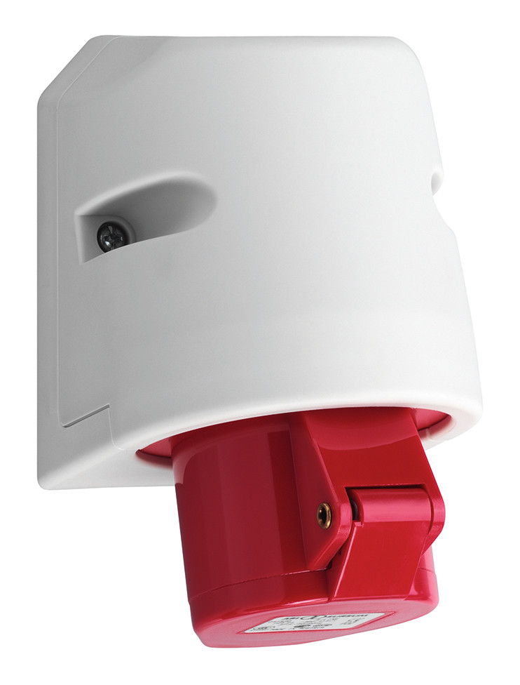 CEE Wandsteckdose, nach VDE 0623, EN 60309 Teil 1/2, IEC 60309, Schutzart spritzwassergeschützt IP44, Nennstrom 32A, 5-polig, Nennspannung 400V AC, 6h, rot, Schraubklemmen, Leitungseinführung von oben oder hinten, inkl. Würgenippel, M25, Neigung 15°, mit unvernickelten Kontakten| Hersteller / Marke | ABL |