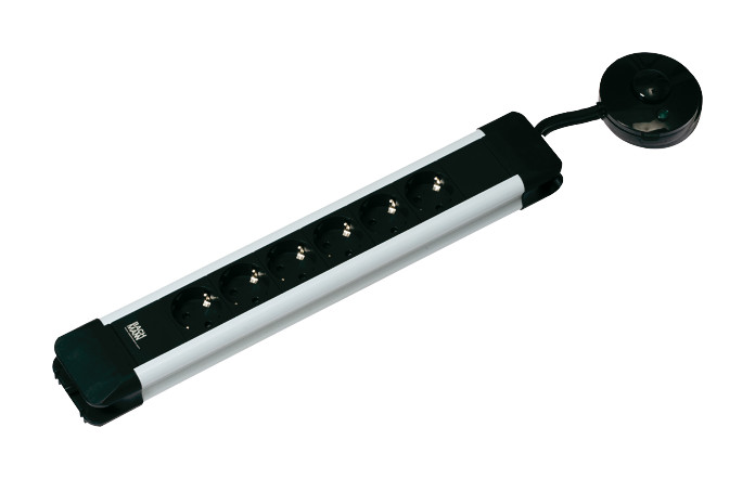 Connectus 6xSchutzkontaktsteckdosen schwarz/grau mit erhöhtem Berührungsschutz, 1xFußtrittschalter mit LED, schwarz, H05VV-F 3G1.50mm² 1,5m schwarz zum Stecker, H05VV-F 4G1.50mm² 1,5m schwarz zum Fußtrittschalter, nicht öffenbar, nicht wiederanschließbar, in Blister verpackt| Hersteller / Marke | BACHMANN |