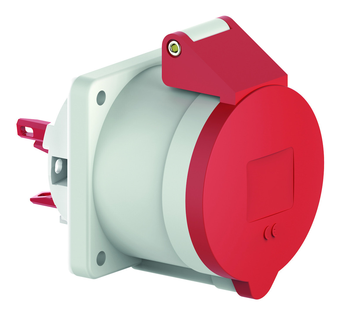 Anbausteckdose Quick-Connect gerade 32A 5p (3P+N+PE) 400V (200/346 bis 240/415V) 6h IP44, Frequenz: 50 und 60Hz, Technische Kennfarbe: rot RAL 3000, Kontaktträger/Kontakte: Der Kontaktträger ist aus Polyamid, Die Kontakte sind Messing blank, Maximaler Leiterquerschnitt: 10,0 qmm, Gehäusematerial: Polyamid, Anschlusstechnik: mit Kontex-Kontakt, Käfigkl., Kabeleinführung: sonstige, Gerätefarbe: Klappdeckel rot RAL 3000, Gehäuse grau RAL 7035, Gerätehöhe: 98 mm, Gerätebreite: 75 mm, Gerätetiefe: 109 mm, Flanschmaß vertikal: 75 mm, Flanschmaß horizontal: 75 mm, Bohrlochabstand vertikal: 60 mm, Bohrlochabstand horizontal: 60 mm