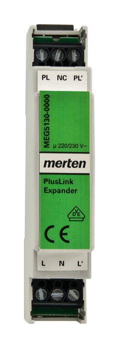 Die PlusLink-Erweiterung muss in eine oder mehrere PlusLink-Linien integriert werden, wenn diese mit mindestens zwei Leitungsschutzschaltern abgesichert werden. Wird bei Wartungsarbeiten oder im Fehlerfall ein Leitungsschutzschalter ausgelöst, dann trennt die PlusLink-Erweiterung automatisch auch die PlusLink-Linie auf. Das ist notwendig, da über die anderen Leitungsschutzschalter die PlusLink-Linie weiterhin spannungsführend wäre. Geeignet für die Montage auf Hutschienen TH35 nach EN 60715. Mit Schraubklemmen. Nennspannung: AC 220/230 V. Neutralleiter: erforderlich (3 Leitersystem). Anschlussquerschnitt: max. 4 mm². Gerätebreite: 1 TE entspricht 18 mm.| Hersteller / Marke | MERTEN |