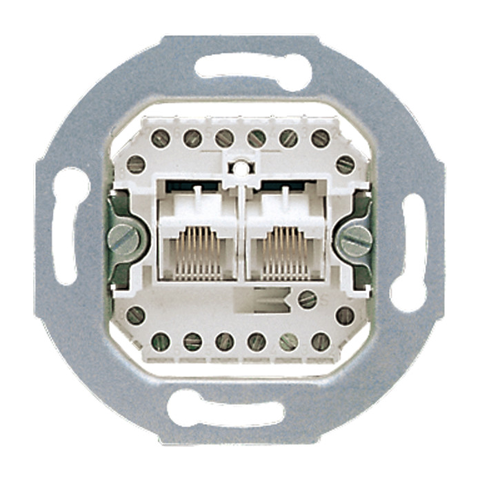 IAE/UAE-Anschlussdose, 2 x 8 Schraubkontakte und 1 Schirmstützkontakt, 2 x 8-polig, für 2 Terminals, ISDN-tauglich, Bauart nach DIN EN 60603-7, IEC 603-7, geeignet für Übertragungswerte bis 16 MHz, für 6- und 8-polige Stecker RJ 11/12 und RJ 45| Hersteller / Marke | JUNG |