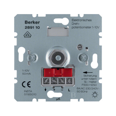 Drehpotenziometer 1-10 V Hauselektronik. Elektronisches Drehpotentiometer 1-10 V, zum Schalten und Regeln von EVG und Tronic-Trafo mit 1-10 V Schnittstelle z.B. für Leuchtstofflampen und NV-Halogenlampen, mit Druck-Ausschalter, Grundhelligkeit einstellbar, kurzschlussfest und überlastsicher (Feinsicherung), mit Ersatzsicherung, mit Schraubklemmen, Sicherungswechsel ohne Demontage der Abdeckung möglich, Bei Verwendung von NV-Halogenlampen empfehlen wir Berker Tronic-Trafo mit 1-10 V Schnittstelle, zur Verwendung mit Abdeckungen. Drehpotenziometer 1-10 V Hauselektronik. Elektronisches Drehpotentiometer 1-10 V, zum Schalten und Regeln von EVG und Tronic-Trafo mit 1-10 V Schnittstelle z.B. für Leuchtstofflampen und NV-Halogenlampen, mit Druck-Ausschalter, Grundhelligkeit einstellbar, kurzschlussfest und überlastsicher (Feinsicherung), mit Ersatzsicherung, mit Schraubklemmen, Sicherungswechsel ohne Demontage der Abdeckung möglich, Bei Verwendung von NV-Halogenlampen empfehlen wir Berker Tronic-Trafo mit 1-10 V Schnittstelle, zur Verwendung mit Abdeckungen.| Hersteller / Marke | BERKER |