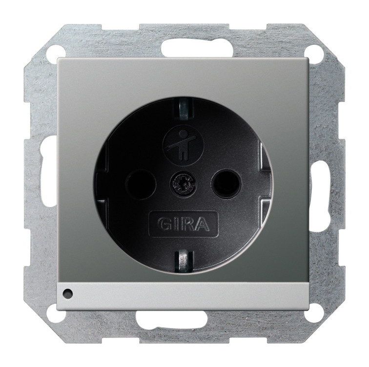 SCHUKO-Steckdose 16 A 250 V~ mit LED-Orientierungsleuchte, integriertem erhöhten Berührungsschutz (Shutter) und Symbol Edelstahl (lackiert) Merkmale: SCHUKO-Steckdose mit eingelassener Lichtleiste. Die weiß leuchtenden LEDs werfen einen Lichtkorridor nach unten. So wird eine indirekte Orientierungsbeleuchtung erzeugt, die auch in Schlafräumen keine lästige Blendung verursacht. Der integrierte Dämmerungssensor schaltet automatisch die LED-Leuchte erst bei Dämmerung ein und bei ausreichendem Licht wieder aus. Die LED-Leuchte ist komplett in die Abdeckung integriert und ein separates Anklemmen entfällt. Hinweise : Erhöhter Berührungsschutz gemäß DIN VDE 0620-1.