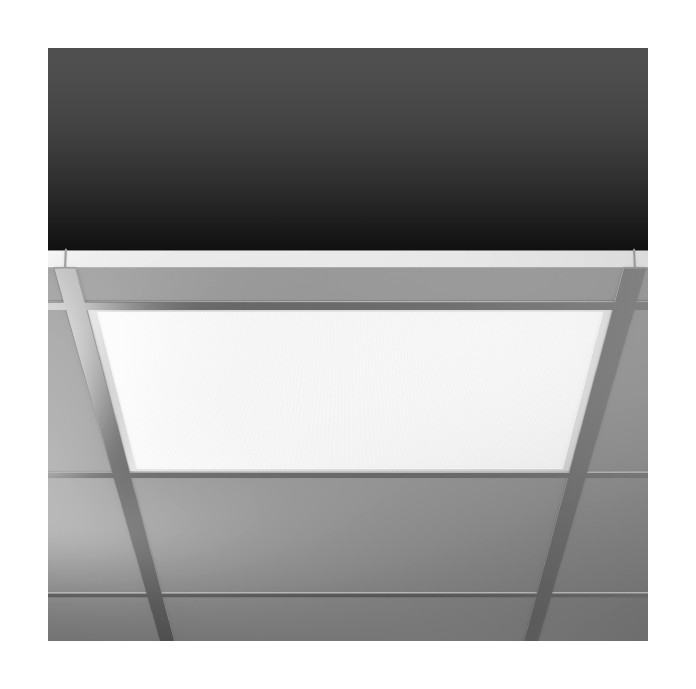 Einlegeleuchte für Deckensysteme mit sichtbaren Tragschienen. Gehäuse Stahlblech pulverbeschichtet. Leuchtenrahmen Aluminium pulverbeschichtet. Diffusor aus vergilbungsfreiem Kunststoff (PMMA) mikroprismatisch. LED Backlight-Technologie für eine homogene Ausleuchtung der gesamten lichtabgebenden Fläche. Betriebsgerät extern. MultiLumen-Funktion: Einstellbarkeit des Leuchtenlichtstroms in 4 Stufen. Hervorragend geeignet für Bürobereiche (UGR = 19) und Bildschirmarbeitsplätze (BAP) gem. DIN EN 12464-1.