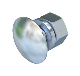 Flachrundschraube zur universellen Befestigung von Konstruktionsbauteilen, inklusive Sechskantmutter und Unterlegscheibe.