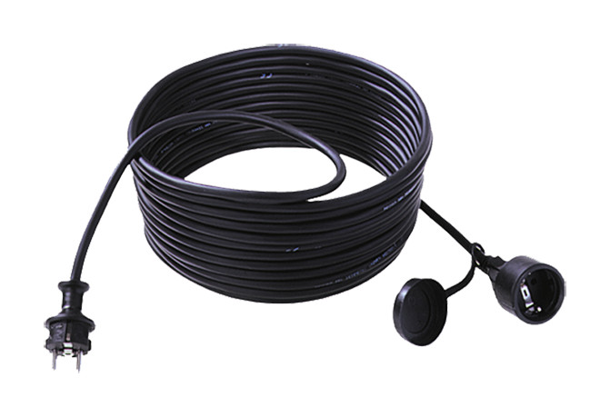 Verlängerung 3pol -Spritzwasserschutz 5 m H07RN-F 3G1,5mm² schwarz Seite1: Schutzkontakt-Zentralstecker Seite2: Schutzkontakt-Kupplung/Deckel| Manufacturer / Brand | BACHMANN |
