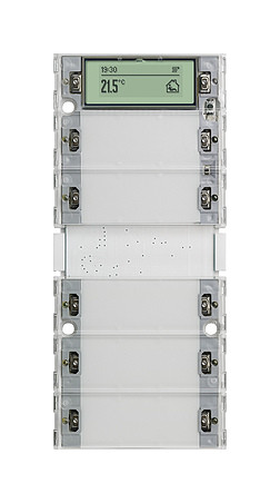 KNX Tastsensor 3 Plus 5fach (2+3) System 55, Gira E22 Inbetriebnahme-Wippe Merkmale: - Montage auf Busankoppler 3 oder Busankoppler 3 externer Fühler. - Demontageschutz durch Verschraubung. - Grafikdisplay mit Hintergrundbeleuchtung und vielfältigen Anzeigemöglichkeiten, z. B. Temperatur, Uhrzeit, Datum, Alarm- und Hinweistexte. - Zwei mehrfarbige Status-LEDs je Bedienfläche. - Mehrfarbige Status-LED (rot, grün, blau) über die ETS parametrierbar. - Beschriftungsfeldbeleuchtung bei Wippensets mit Beschriftungsfeld. - Interner Temperatursensor zum Messen der lokalen Raumtemperatur. Tastsensor-Eigenschaften:: - Wippen- oder Tastenfunktion für jede Bedienfläche einstellbar. - Wippenfunktion: Schalten, Dimmen, Jalousiesteuerung, Wertgeber 1 Byte, Wertgeber 2 Byte, Szenennebenstelle, 2-Kanal-Bedienung und manuelle Lüftersteuerung. - Tastenfunktion: Schalten, Dimmen, Jalousiesteuerung, Wertgeber 1 Byte, Wertgeber 2 Byte, Szenennebenstelle, 2-Kanal-Bedienung, Reglernebenstelle, Reglerbedienung, Heizungsuhrbedienung und manuelle Lüftersteuerung. - Reglernebenstelle oder Reglerbedienung: Betriebsmodusumschaltung, (definierte Wahl eines Betriebsmodus oder Wechsel zwischen verschiedenen Betriebsmodi bei Reglernebenstelle), Wechsel des Präsenzzustands, Sollwertverschiebung. - Sperrobjekt zum Sperren von einzelnen Tasten- bzw. Wippenfunktionen. - Anzeige einer Alarmmeldung durch Blinken sämtlicher LEDs. - Mehrfarbige Status-LED (rot, grün, blau) ist global oder jeweils getrennt konfigurierbar. Über den Bus kann eine überlagerte Funktion aktiviert werden, wodurch Farbe und Anzeigeinformation einzelner Status-LEDs prioritätsbedingt verändert werden können. - Beschriftungsfeldbeleuchtung EIN, AUS, automatische Abschaltung oder über Objekt schaltbar. - Kommunikationsobjekt zur Helligkeitssteuerung der Status-LED, Beschriftungsfeldbeleuchtung und Hintergrundbeleuchtung des Displays. Raumtemperaturregler-Eigenschaften:: - Betriebsmodi: Komfort, Stand-by, Nacht und Frost- bzw. Hitzeschutz mit jeweils eigenen Temperatursollwerten (für Heizen und bzw. oder Kühlen). - Komfortverlängerung durch Präsenztaste. - Frost- bzw. Hitzeschutzumschaltung durch Fensterstatus oder durch Frostschutzautomatik. - Anzeige der Raumtemperaturregler-Informationen über das Gerätedisplay. - Wahlweise ein oder zwei Regelkreise. - Je Heiz- oder Kühlstufe sind verschiedene Regelungsarten konfigurierbar: PI-Regelung (stetige oder schaltende PWM) oder 2-Punkt-Regelung (schaltend). - Regelparameter für PI-Regler und 2-Punkt-Regler einstellbar. - Interner Temperatursensor und bis zu zwei externe Temperaturfühler (1 x Objekt, 1 x bedrahtet) zur Raumtemperaturmessung möglich. - Optionaler externer bedrahteter Fernfühler bei Fußbodenheizung. - Heizungsuhr mit 28 Schaltzeiten. LC-Display Eigenschaften:: - Grafikdisplay mit schaltbarer LED-Hintergrundbeleuchtung. - 1-Bereichs- oder 2-Bereichsdarstellung. - Textanzeigen im Display in den Sprachen: Deutsch, Englisch, Niederländisch, Norwegisch, Russisch und Polnisch. Weitere Sprachen im Internet verfügbar. Hinweise : - Professionelle Beschriftung über den Gira Beschriftungsservice www.beschriftung.gira.de. - Der Tastsensor wird mit einer programmneutralen Inbetriebnahme-Wippe geliefert. Das passende Wippenset zum Schalterprogramm ist separat zu bestellen.| Manufacturer / Brand | GIRA |