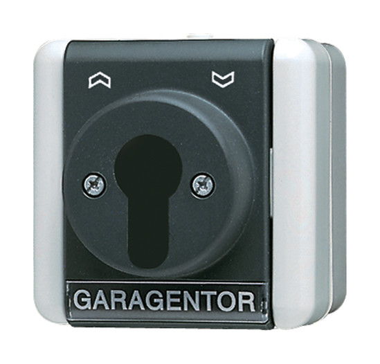 Schlüsselschalter, 10 AX, 250 V ~, mit Schriftfeld 9 x 50 mm, Taster (Wechsler) 1-polig, für Profil-Halbzylinder mit ca. 40 mm Gesamtlänge (DIN 18252)