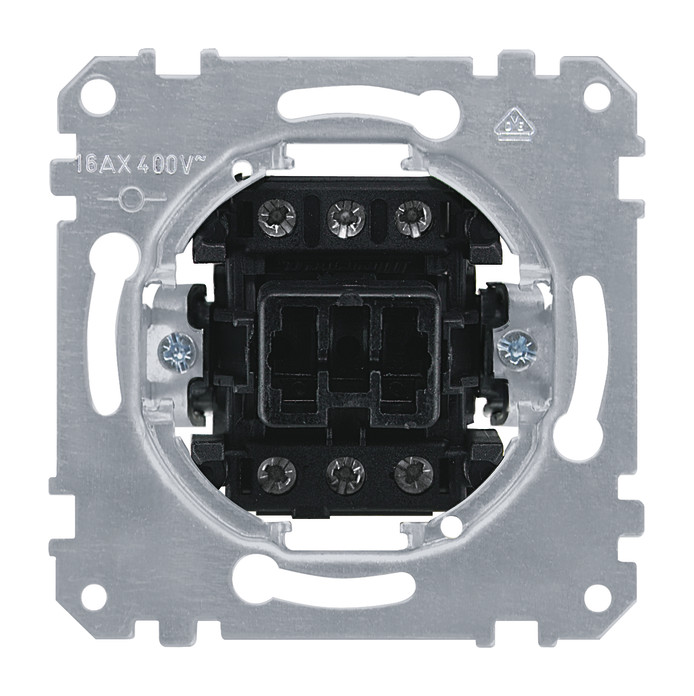 Beleuchtbar. Mit Krallen- und Schraubbefestigung. Mit Schraubklemmen als Verbindungsklemmen nach VDE 0632. Zu komplettieren mit: Wippen für Schalter/Taster System M