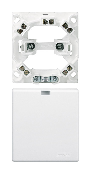Mit bruchgeschütztem Deckel und Schnappverschluss. Schraub- und Krallenbefestigung für 60er- und 70er-UP-Dosen, mit herausnehmbaren Spreizkrallen. Großer, übersehbarer Anschlussraum. Dübelbefestigung sowie Kabeleinführung von oben ebenfalls möglich. Zugentlastung. Farbe: polarweiß.