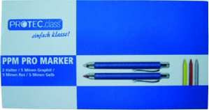 Stabil und komplett aus eloxiertem Metall Abschraubbare Kappe mit Spitzer und integrierter Graphitmine Einsatzgebiete: Gummi, Beton, Kunststoff, Holz, Fliesen, Metall, Karton, Papier u.v.m. Bestehend aus: 1 PRO Marker mit Spitzer, Clip und Graphitmine HB 1 PRO Marker mit Spitzer, Clip und Allesschreibermine rot5 Ersatzminen Graphit HB, Länge 120 mm 5 Ersatzminen Allesschreiber rot, Länge 120 mm 5 Ersatzminen Allesschreiber gelb, Länge 120 mmStabil und komplett aus eloxiertem Metall Abschraubbare Kappe mit Spitzer und integrierter Graphitmine Einsatzgebiete: Gummi, Beton, Kunststoff, Holz, Fliesen, Metall, Karton, Papier u.v.m. Bestehend aus: 1 PRO Marker mit Spitzer, Clip und Graphitmine HB 1 PRO Marker mit Spitzer, Clip und Allesschreibermine rot 5 Ersatzminen Graphit HB, Länge 120 mm 5 Ersatzminen Allesschreiber rot, Länge 120 mm 5 Ersatzminen Allesschreiber gelb, Länge 120 mm| Manufacturer / Brand | PROTEC.CLASS |