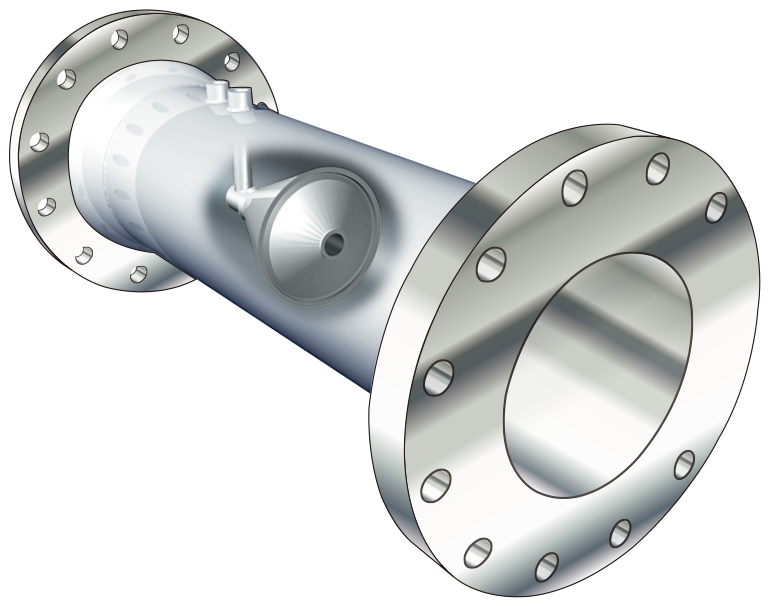 Venturi cone is an innovative flowmeter which offers the ability to measure a differential pressure and a flow rate. Venturi cone offers better accuracy, variety of ranges, flexible installation, and requires less maintenance. The key benefit of venturi cone is the unique design, the ability to provide a repeatable accuracy up to 0.5 % of rate under the most harsh flow conditions. Furthermore, it offers a wide range of reynolds numbers. Venturi cone offers an exceptional sizing flexibility, such as diameter ½ ~ 120". Venturi cone assures a casting performance, with no moving parts to be replaced. Additionally, the contoured shape of the cone directs the flow without impacting the abrupt surface.