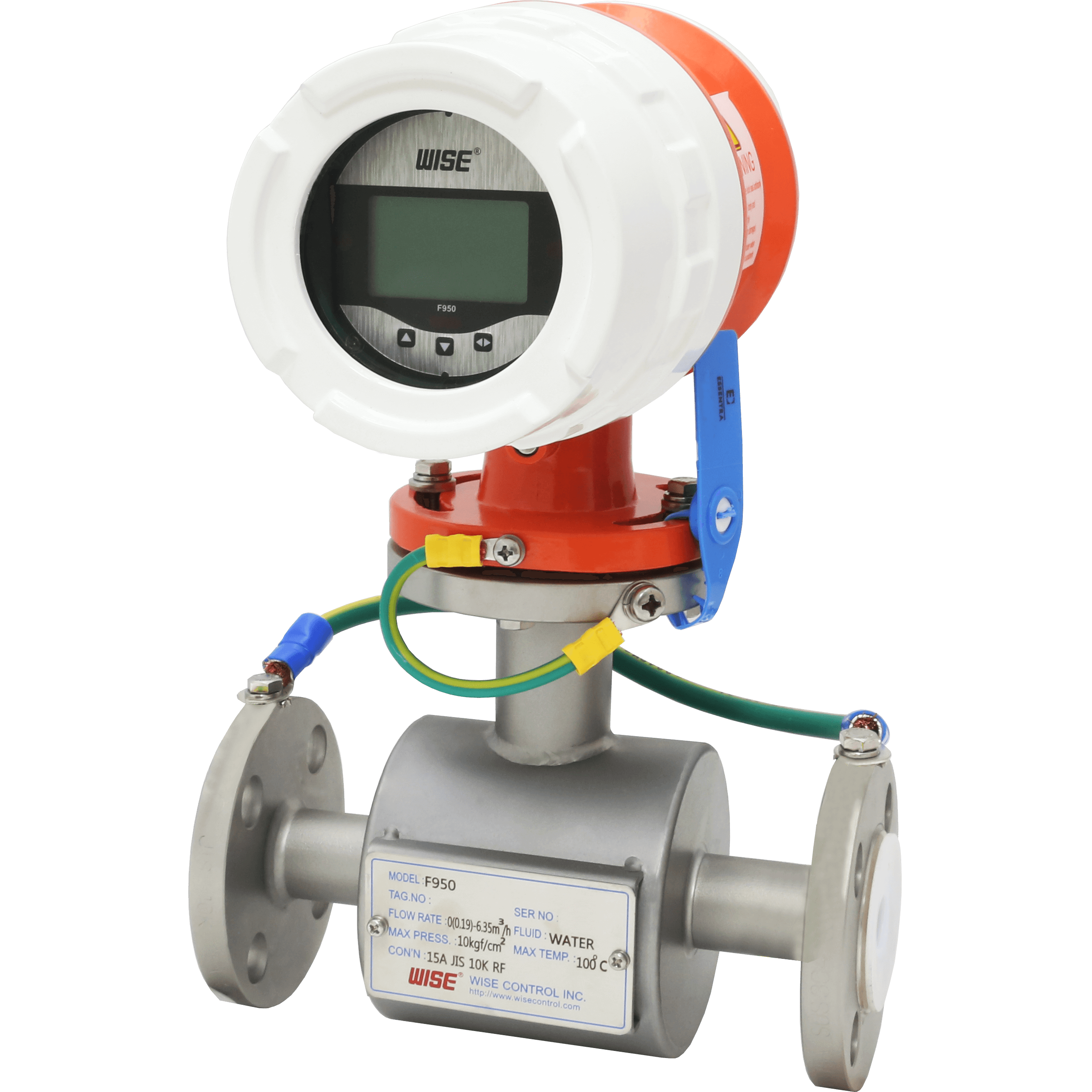 The Electromagnetic Flowmeter can be used to accurately measure the flowrate of liquids, paper pulp, slurry and mineral slurry which has an electrical conductivity greater than 10 µs/cm.F950 is a flow measurement system in a compact design which integrates the primary and signal converter.Applications• Facilities in water supply, sewerage, agricultural water, industrial water and waste water • Petrochemical, alkali salt, chemicals and coolant process. • Circulating water like cement sludge, coal sludge • Spoke water, waste water, coolant in pulp, paper mill • Coolant, seawater circulating, in ship building factories