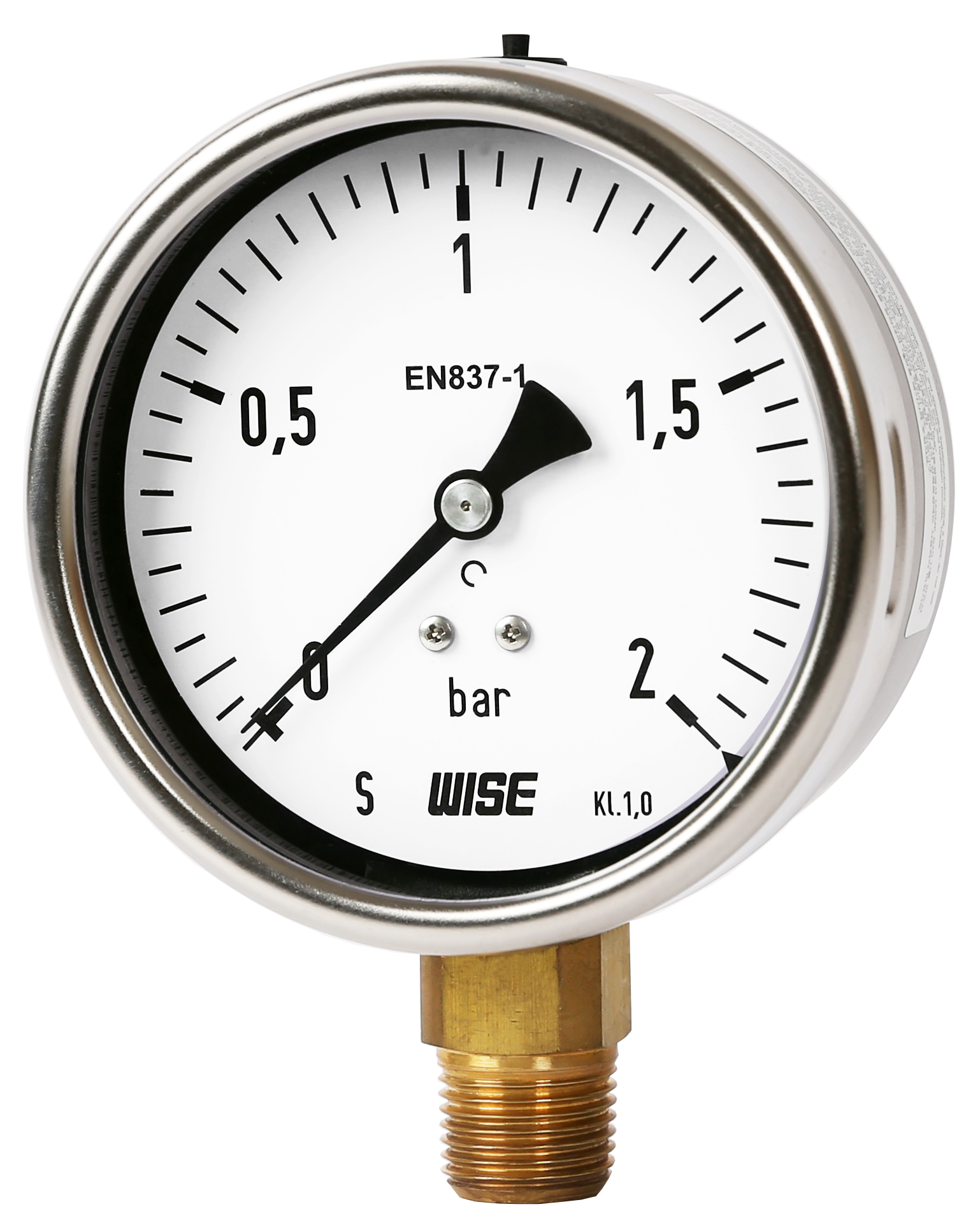 Sturdy industrial pressure gauge designed in compliance with the operational safety requirements of EN 837-1. Reliable pressure gauge for the machine and plant. For gaseous and liquid media that are not highly viscous or crystallising and will not attact copper alloy parts.